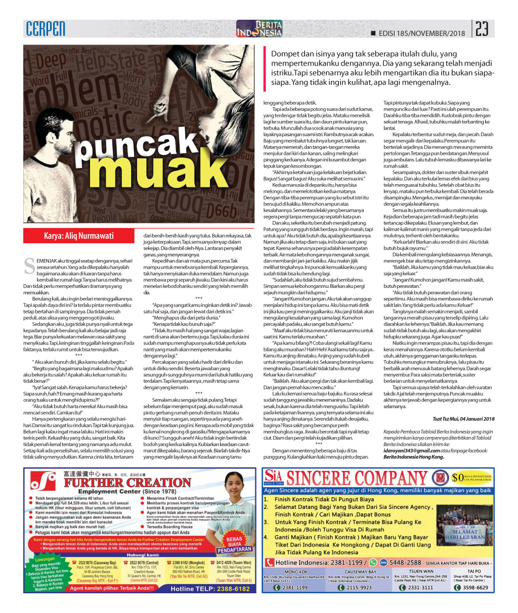Blog Saya: Rubrik Cerpen: Tabloid Berita Indonesia Hong Kong, Judul: Puncak Muak
