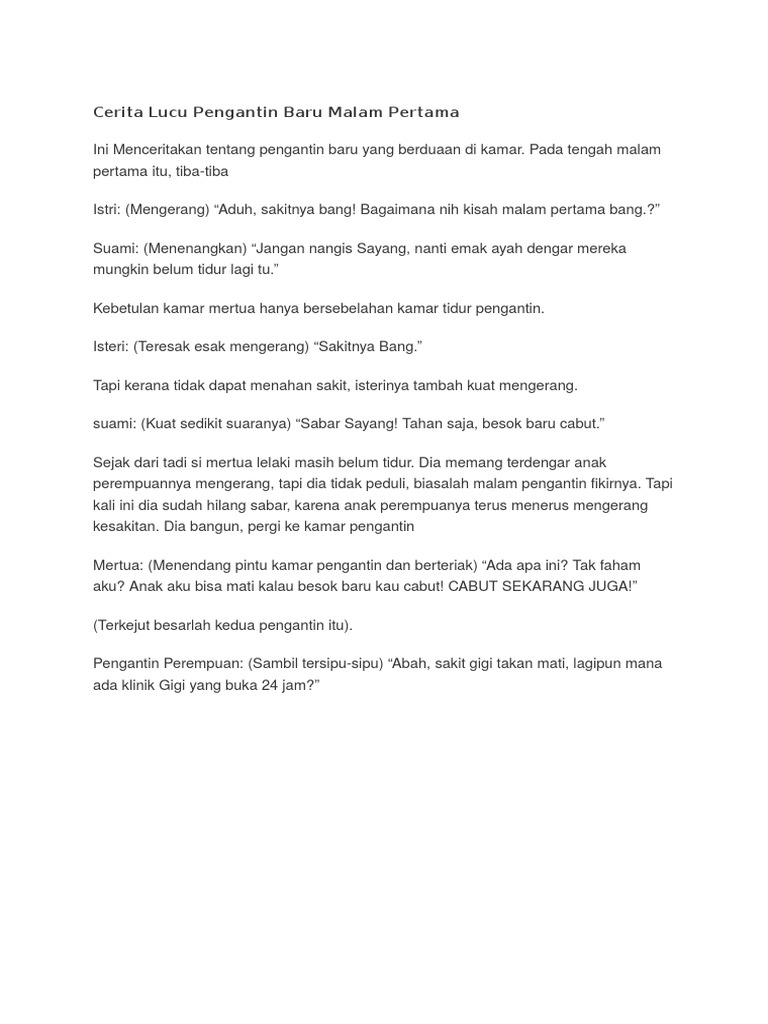 Cerita lucu - 2. Pengantin baru - Wattpad