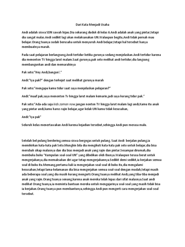 tuliskan apa makna dari cerpen *malas belajar? - Brainly.co.id