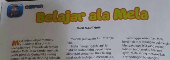 Cerpen Belajar ala Mela di Majalah Bobo - Hairi Yanti’s Blog
