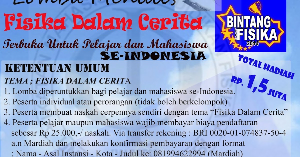 Lomba Menulis Cerpen Tingkat Nasional Bintang Fisika 2014