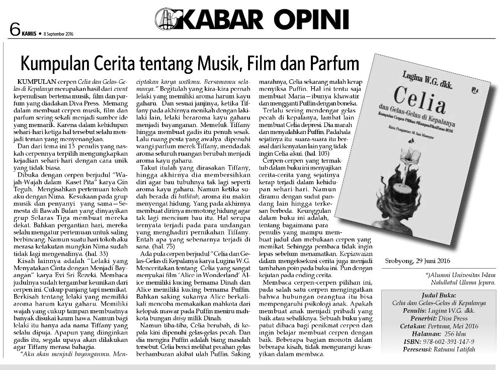 Ratnani_El_kazuhana on Twitter: “Resensi “Kumpulan Cerita tentang Musik, Film dan Parfum” di Kabar Madura, 8 September 2016. @divapress01… "