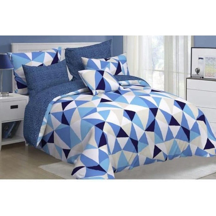 Jaxine Bedcover Set Katun Motif Abstrak - Diamond Blue | Bedcover Dewasa | Shopee Indonesia