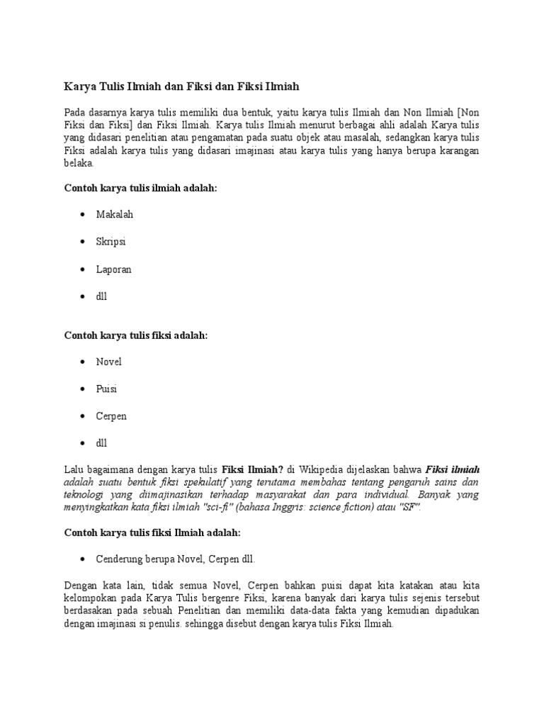 Karya Tulis Ilmiah Dan Fiksi Dan Fiksi Ilmiah