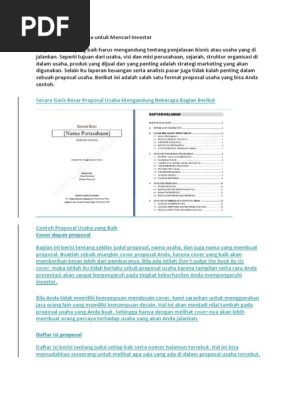 Contoh Proposal Usaha Untuk Mencari Investor | Proposal, Pengusaha, Membaca