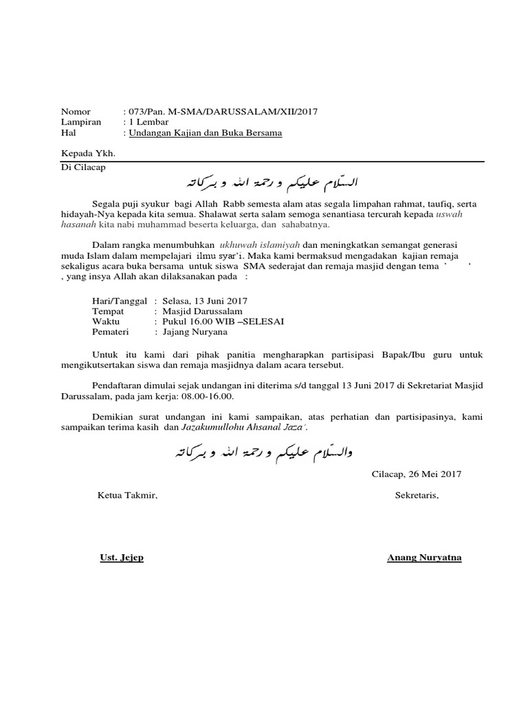 Contoh Surat Undangan Buka Puasa Bersama - Brankas Arsip