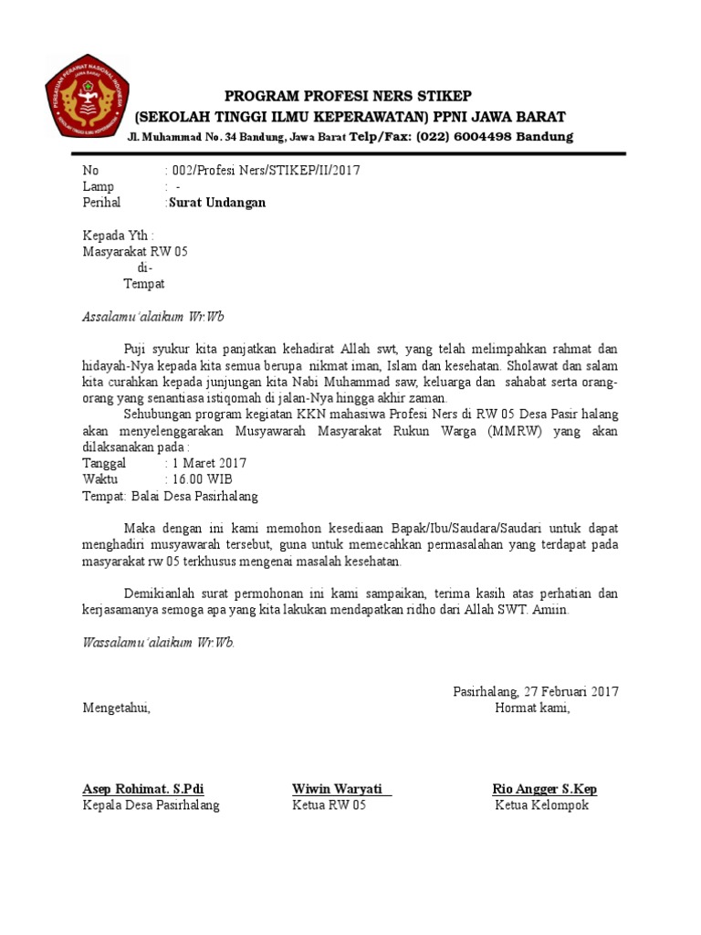 Contoh Surat Undangan Rt Untuk Warga - Kumpulan Surat Penting