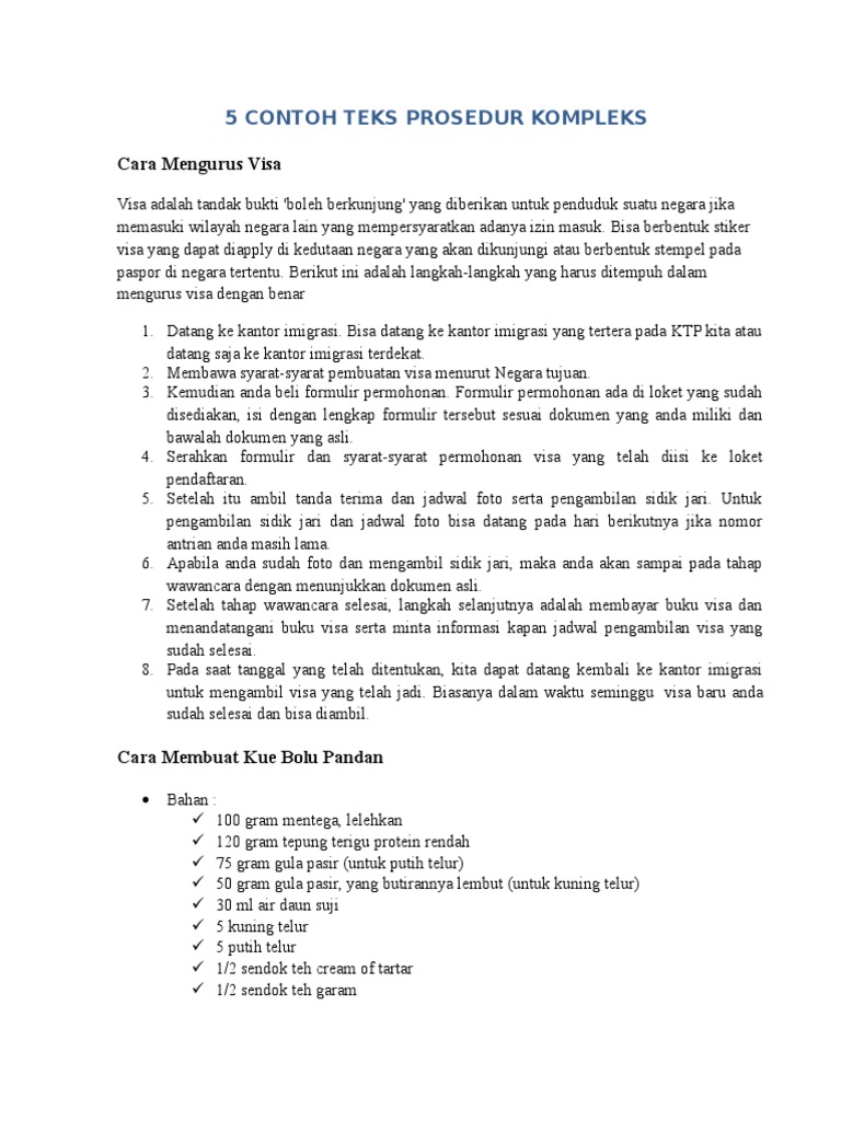 26 Contoh Teks Prosedur Kompleks Singkat Makanan Kerajinan Tutorial dll