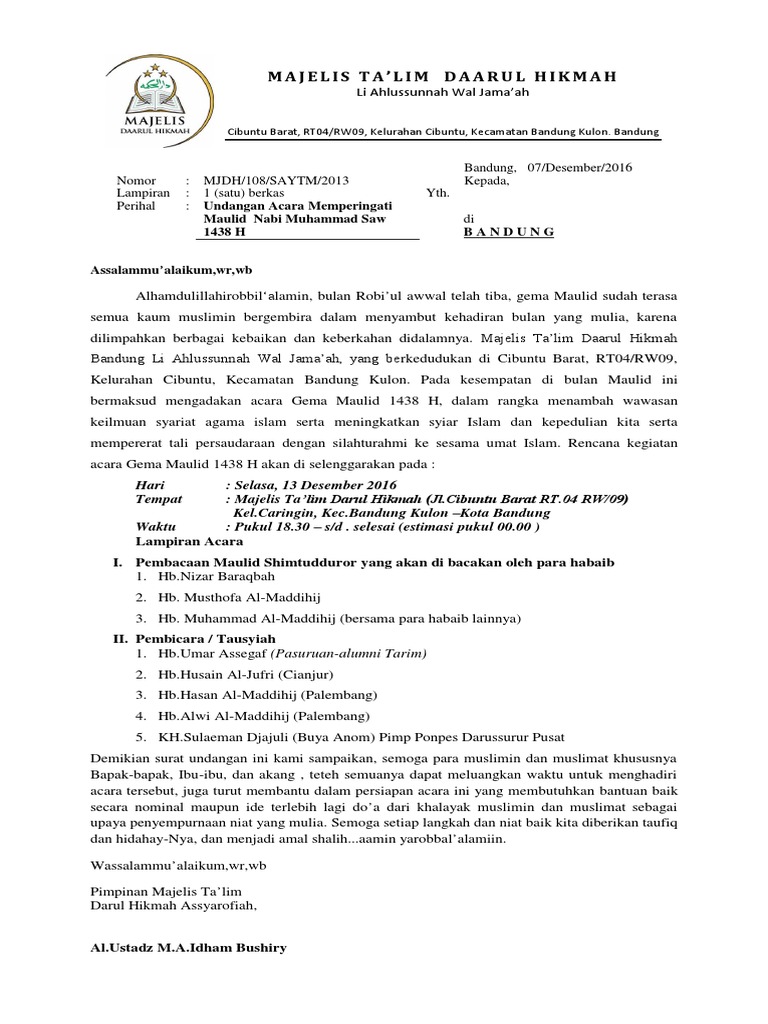 Contoh Surat Undangan Maulid Nabi Saw Pdf - Kumpulan Contoh Surat
