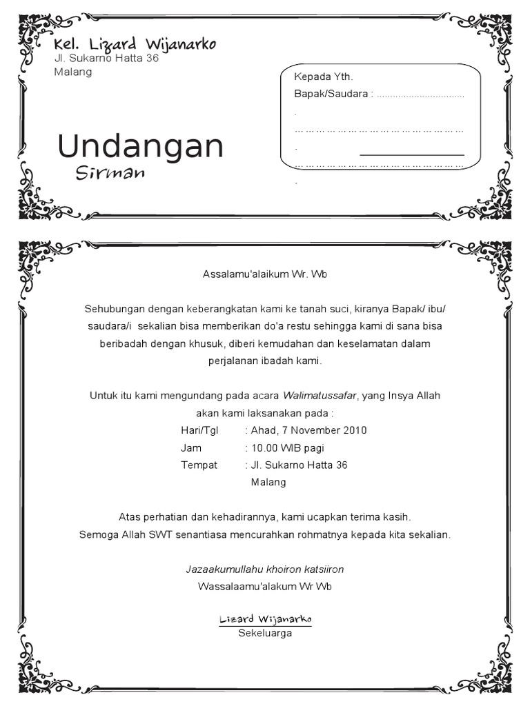 DOC) Contoh Konsep Surat Undangan Walimatus Safar dan Umroh Word | Kurniawan M. Rifai - Academia.edu