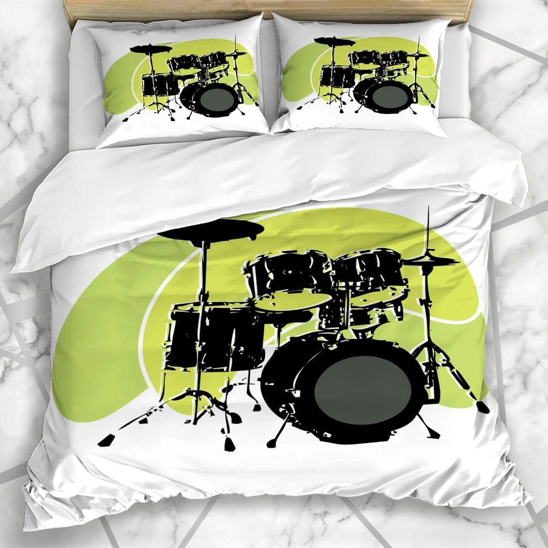 HANILUC Bedding - Duvet Cover Set Sound Green Drumkit Drum Kit Instrument Drumset Rock Sticks Drummer Design Microfiber New Three-Piece Set Of Various Patterns Custom 2 Pillowcase Quilt cover 135*200: Amazon.co.uk: Kitchen