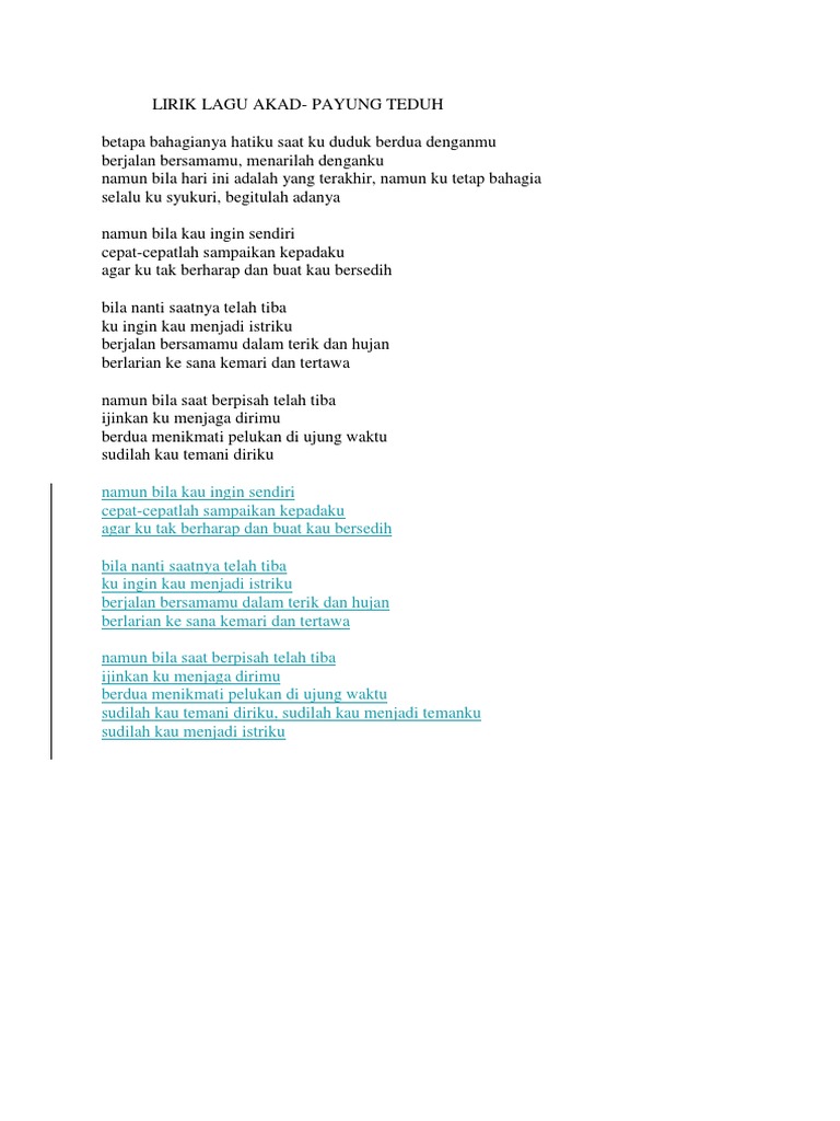 LIRIK ‘lagu’ - Akad - Payung Teduh - Wattpad