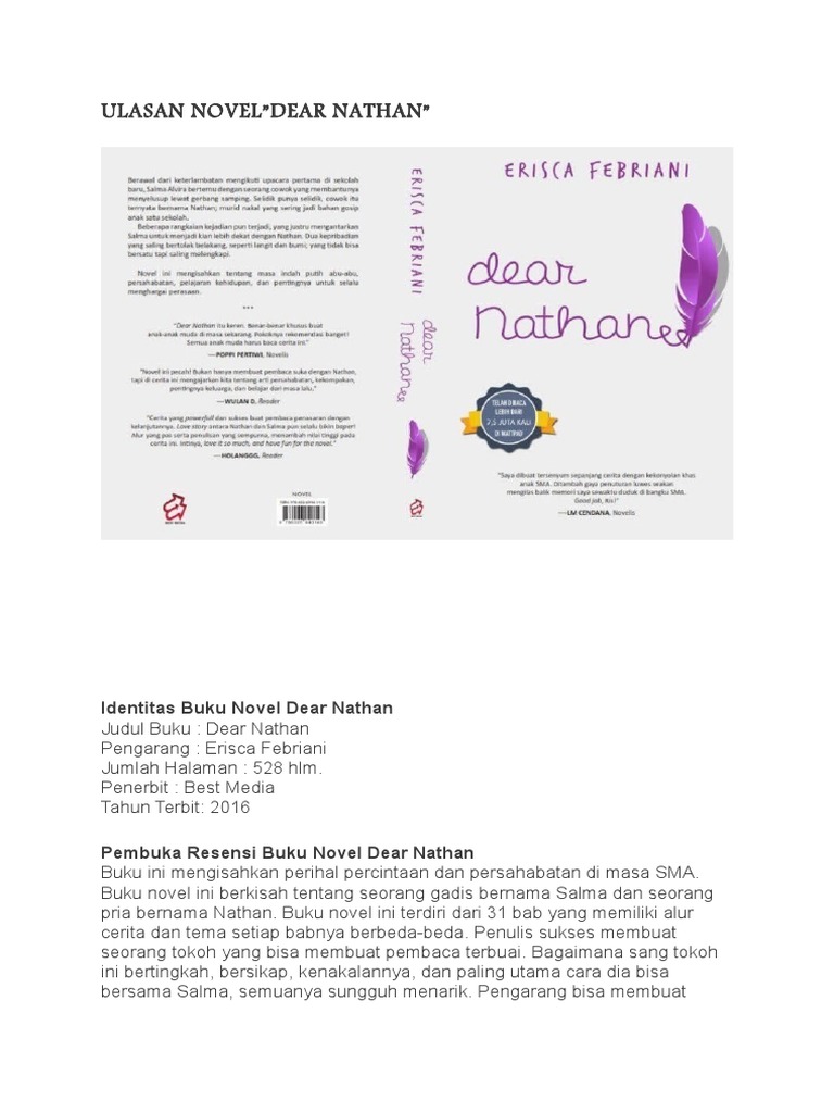DOC) Resensi Novel Dear Nathan Besera Unsur | Perindu Surga …