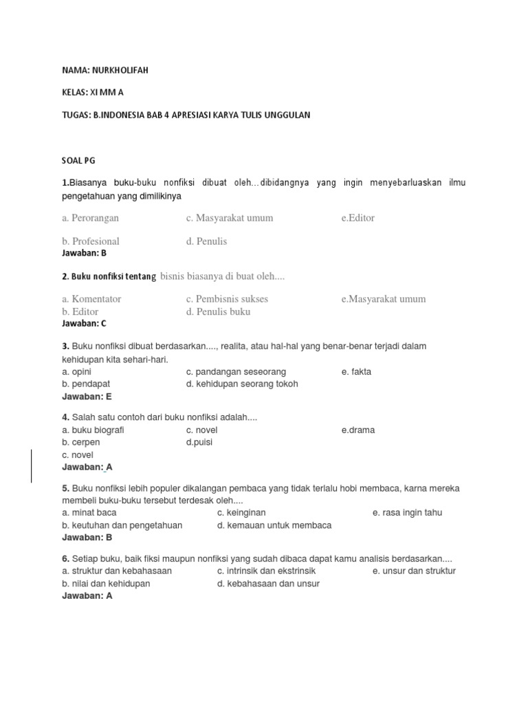 soal dan jawaban resensi Nilai Fiksi dan Non Fiksi - E-KELAS.COM