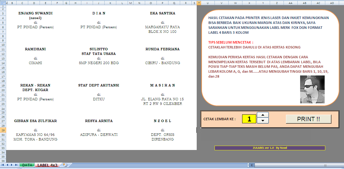 Nzoelandi Hobi Excel: MENCETAK LABEL MENGGUNAKAN EXCEL
