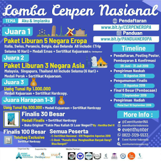 Lomba Cerpen Nasional Eropa 2019 di Event Hunter Indonesia - Info Lomba 2020 Terbaru