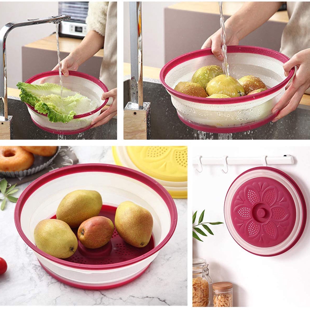 Foldable Microwave Cover Drain Basket Fruit Vegetables Basket Food Cover | Shopee Singapore