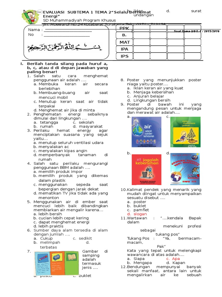Soal Subtema 1 Tema 2