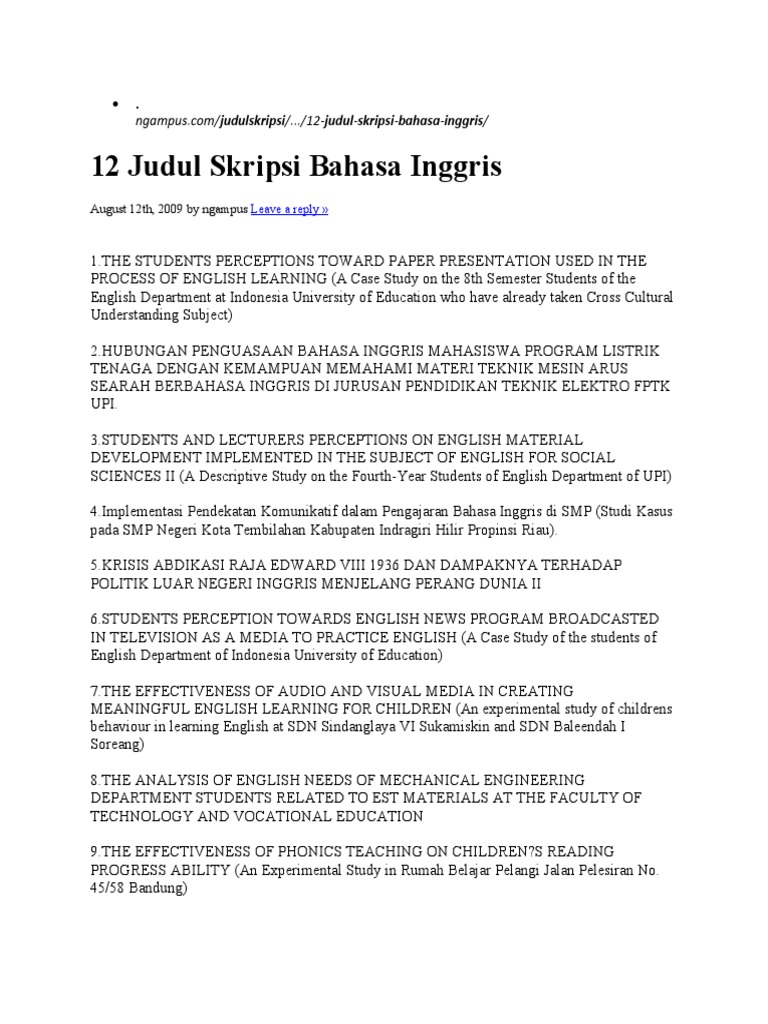 Contoh Judul Skripsi Bahasa Inggris PTK - [PDF Document]
