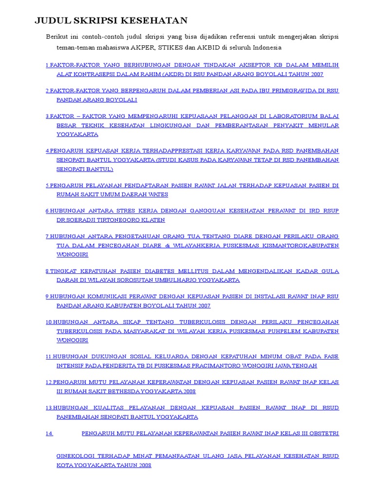 Skripsistikes’s Blog | CONTOH-CONTOH JUDUL SKRIPSI KEPERAWATAN, KESEHATAN MASYARAKAT DAN KEBIDANAN