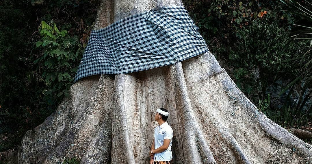 Mengapa masyarakat Bali suka menutupi batang pohon besar dengan …