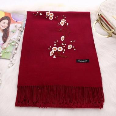 Jual IIT Fall And Winter Long Section Of Women’s Fashion Plum Blossom Embroidery Scarf Knit Cardigan Scarves Pashmina Shawl - Watermelon Red Online November 2020 | Blibli.com