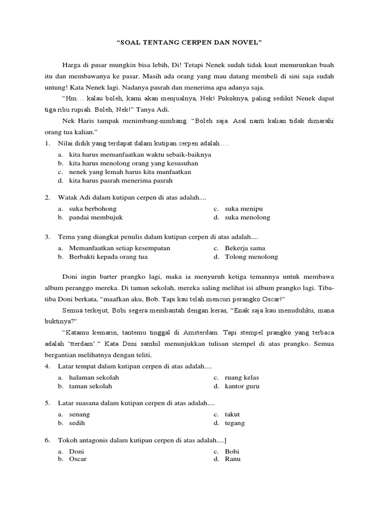 Contoh Soal Cos Dan Jawaban Unsur Instrisik Cerpen - Guru Ilmu Sosial
