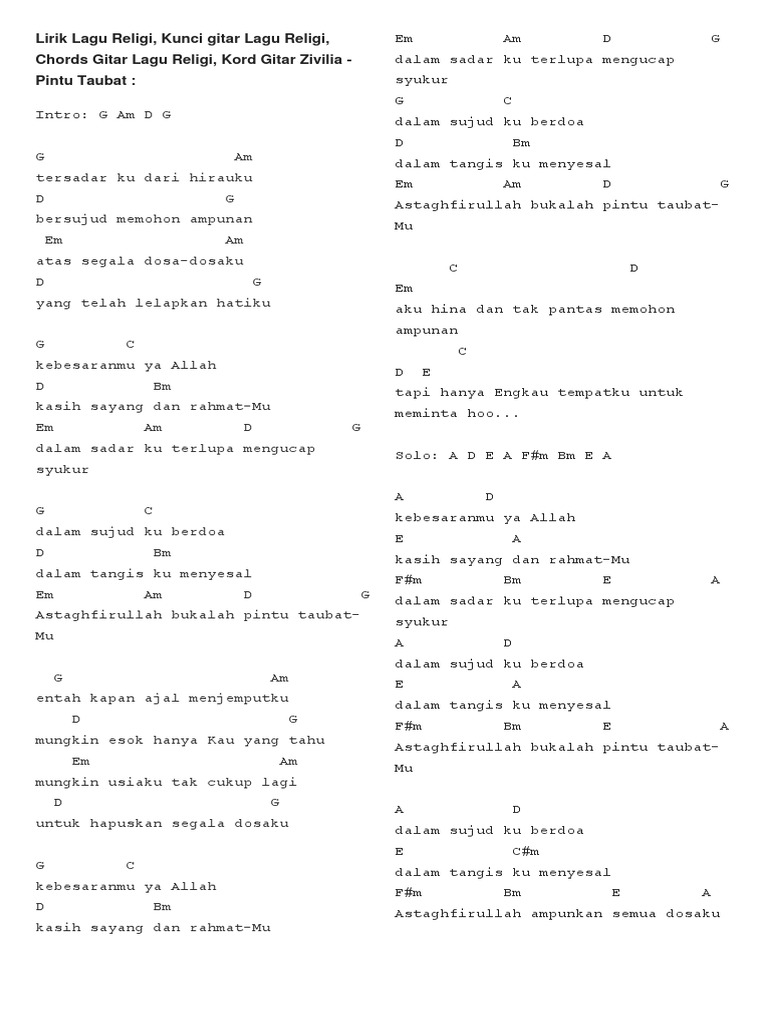 Kunci Gitar Lagu Indonesia - Kunci Gitar Zivilia - Pintu taubat …