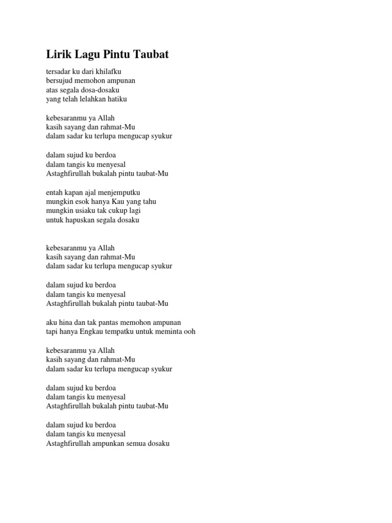 Lirik Lagu Pintu Taubat
