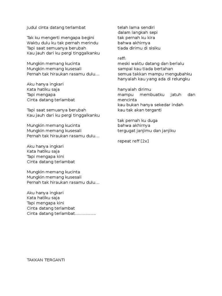 Lirik-lirik lagu - takkan terganti - Wattpad