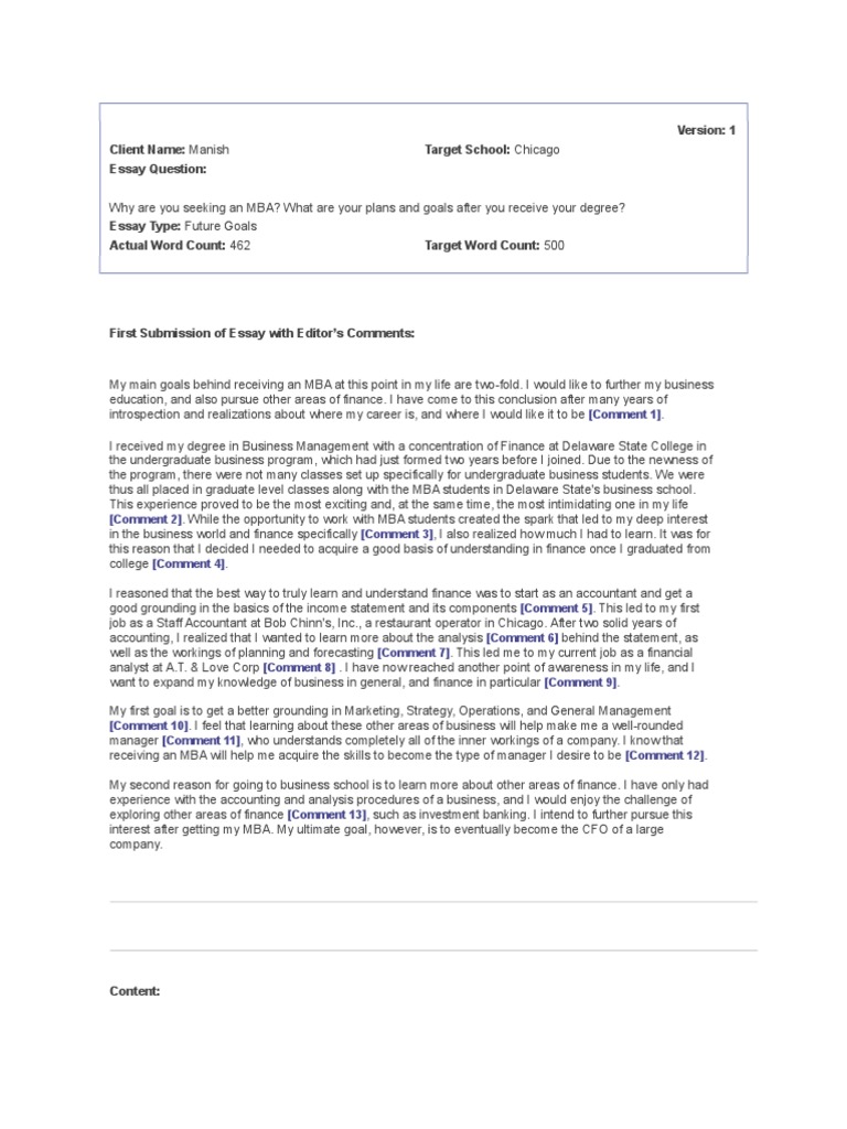 MBA Career Goals Essay Examples ? Top Ranked MBA Essay Samples | ARINGO