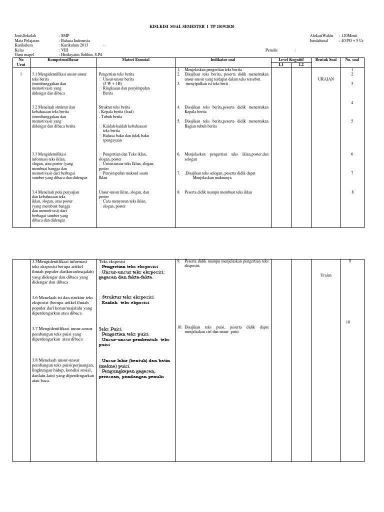 B. INDONESIA K13 KLS 8 kisi-kisi soal PAS(1)