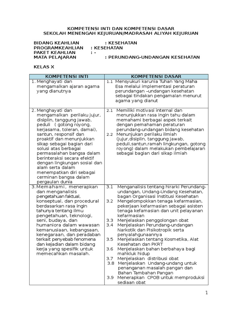 Ki Kd Perundang-undangan Kesehatan