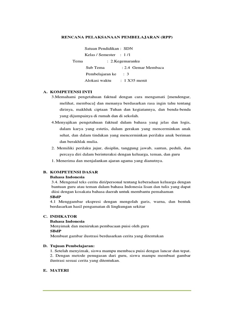 DOC) (362402516) RPP KURIKULUM 2013 SD KELAS 1 SEMESTER 1 - Tema …