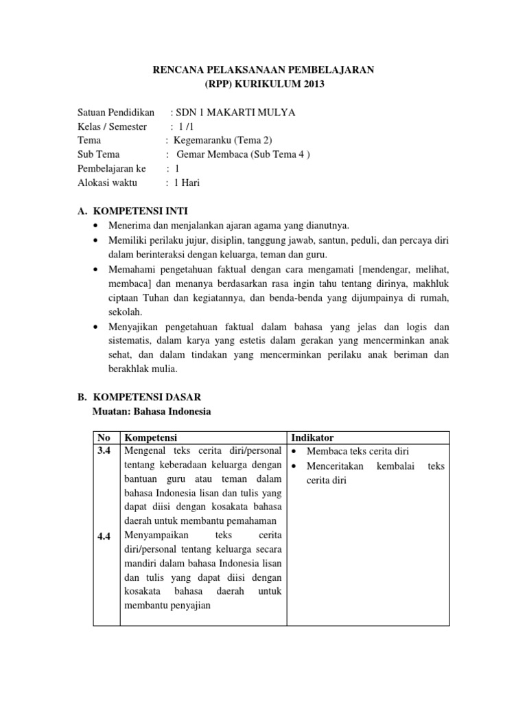 Rencana Pelaksanaan Pembelajaran (Rpp) Kurikulum 2013