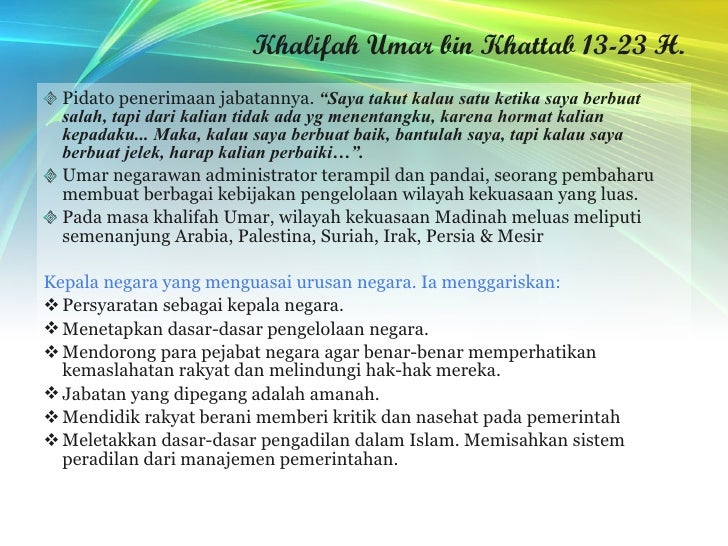 Pidato Politik Pertama Umar bin Khattab Ketika Menjadi Khalifah …