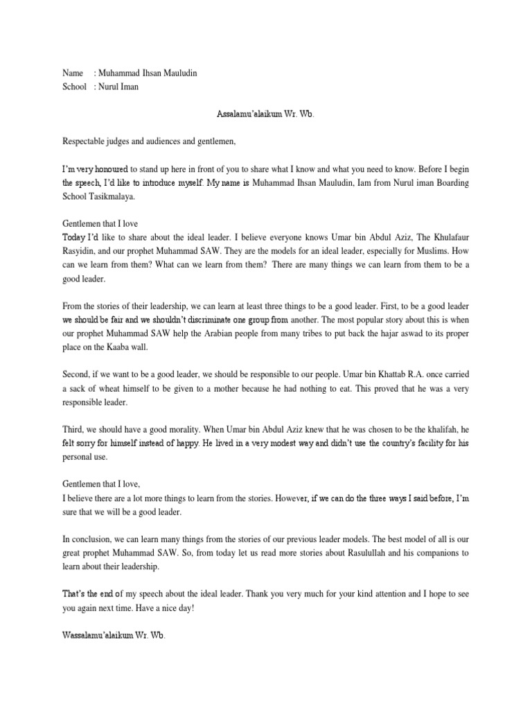 Pidato Bahasa Inggris Kepemimpinan.docx - Assalamu\u2019alaikum Wr …