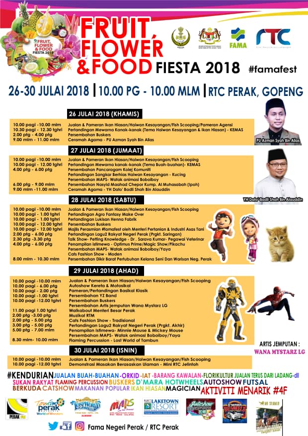 Aina Abd Rasid on Twitter: “Wow!De Boboiboy?Cats Fashion Show pn de gak?Kt mn eh?Laa..kt Flowers,Fruits&Foods Fest @PerakRtc Gopeng.Bile tu?Esk smpi 28/7! #FamaFest