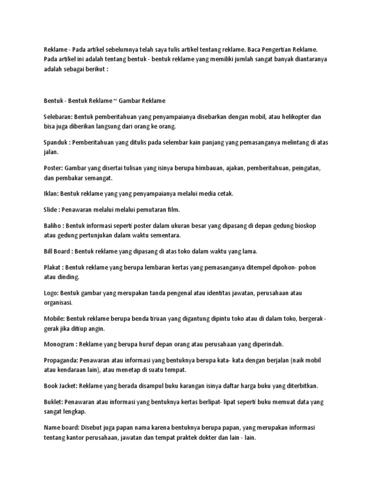 Jenis-Jenis Reklame, Pengertian dan Contoh Reklame - Seni Budayaku