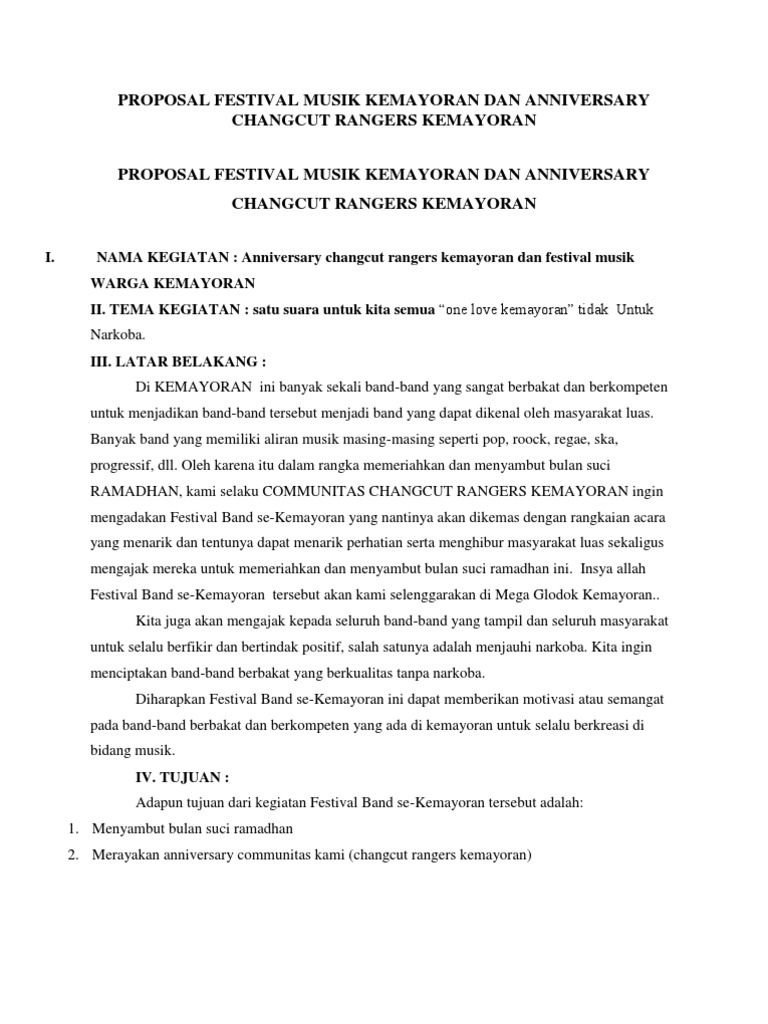 Proposal Festival Musik Kemayoran Dan Anniversary Changcut …
