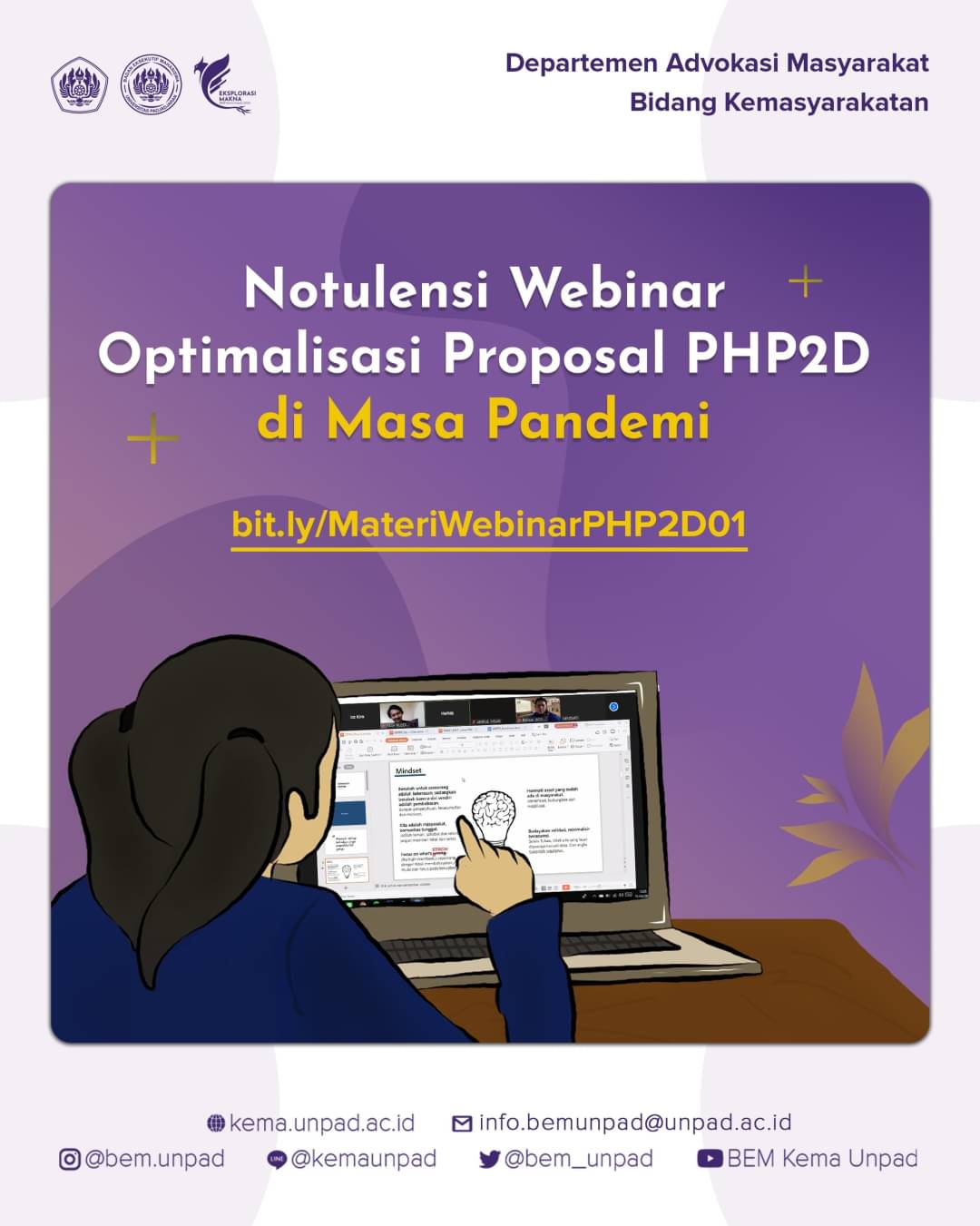 BEM Kema Unpad on Twitter: “[NOTULENSI WEBINAR OPTIMALISASI PROPOSAL PHP2D DI MASA PANDEMI] Halo, Kema Unpad! Apakah di antara Kema ada yang terlewat mengikuti Webinar Optimalisasi Proposal PHP2D (Program Holistik Pengembangan dan