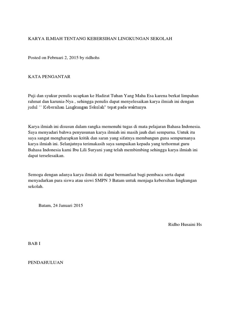 Contoh Proposal Karya Ilmiah Tema Kebersihan Lingkungan