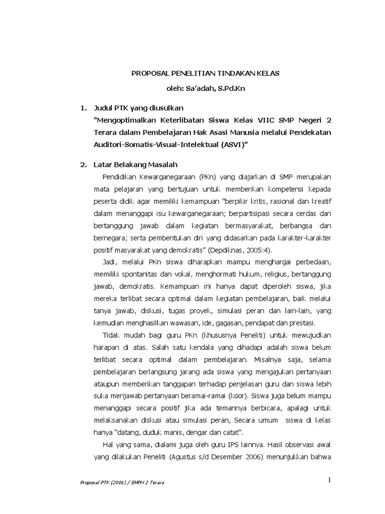 PROPOSAL PENELITIAN TINDAKAN KELAS (PTK) - PDF Download Gratis