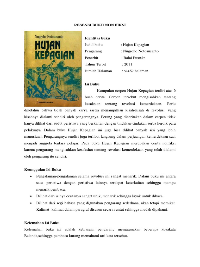 Contoh Resensi Buku Hujan Kepagian.docx - Contoh Resensi Buku Hujan Kepagian Judul Buku Hujan Kepagian Penulis Nugroho Notosusanto Penerbit Balai | Course Hero