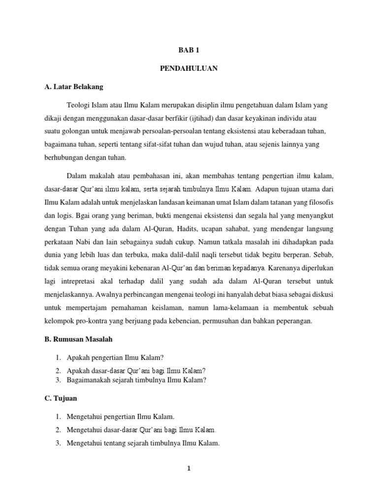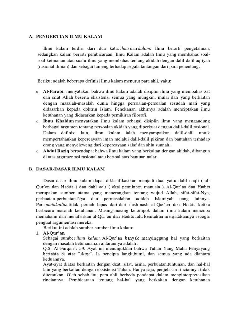 DOC) BAB I PENGERTIAN ILMU KALAM | Maf Tukhi - Academia.edu