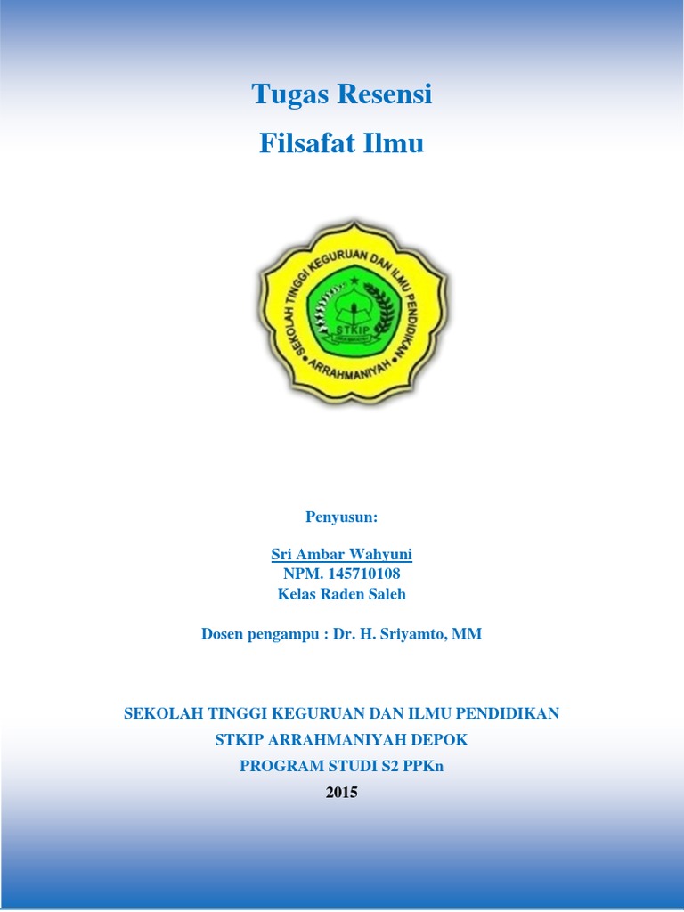 Resensi Buku Filsafat Ilmu Sri Ambar W