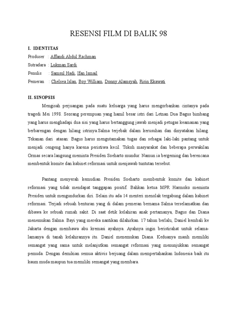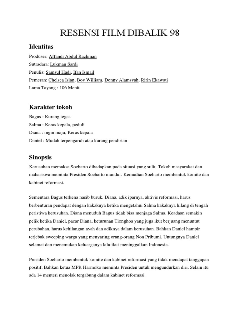 DOC) Teks Ulasan Film beserta Strukturnya “Di Balik 98” | wahyu nur - Academia.edu