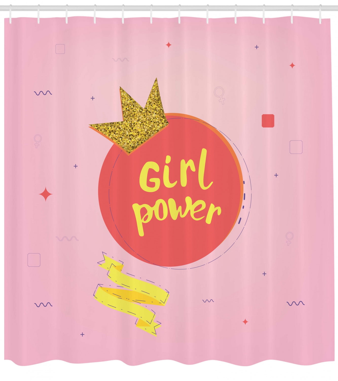 Girl Slogan Shower Curtain, Circle Wavy Strikes Details Icons with a Crown Illustration Girl Power, Fabric Bathroom Set with Hooks, 69"W X 75"L Long, Multicolor, by Ambesonne - Walmart.com