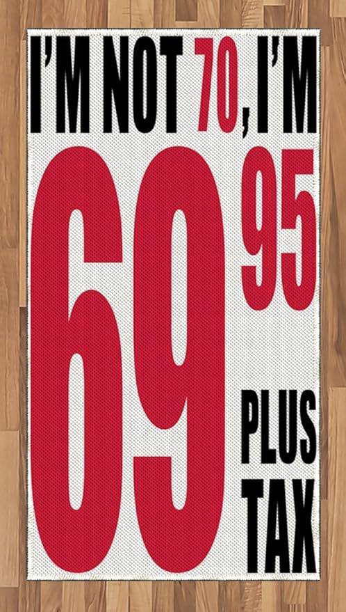 Amazon.com: Ambesonne 70th Birthday Area Rug, Funny Slogan Like 69 Plus Tax Words Birthday Old People Party, Flat Woven Accent Rug for Living Room Bedroom Dining Room, 2.6' x 5', Dark Coral