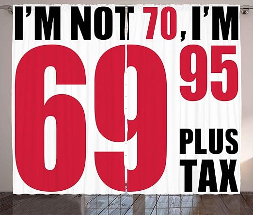 Amazon.com: Ambesonne 70th Birthday Decorations Curtains, Slogan Like 69 Plus Tax Quote Birthday Old Party, Living Room Bedroom Window Drapes 2 Panel Set, 108 W X 96 L Inches, Dark Coral Black